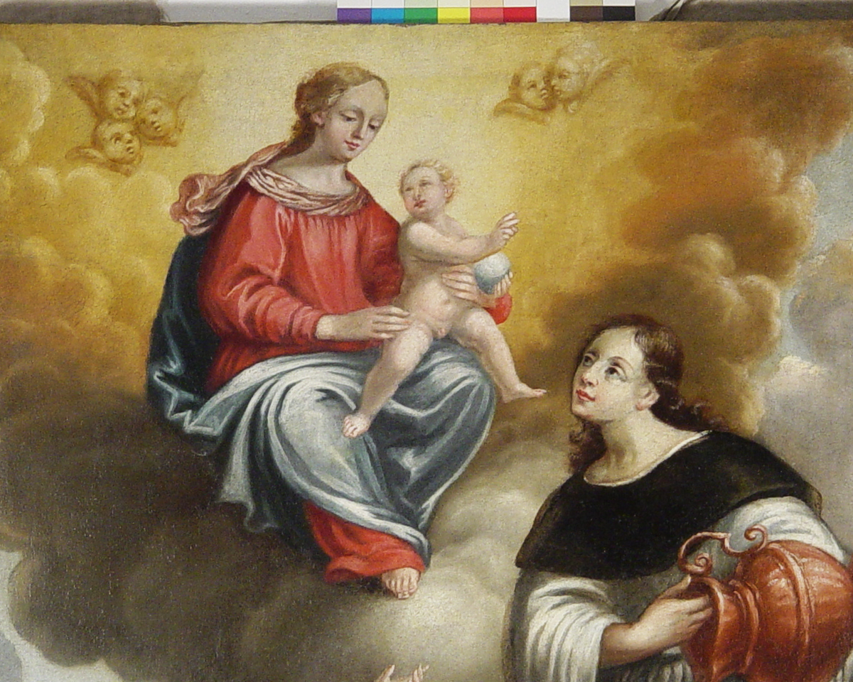 Cleaning involved the controlled reduction of oxidized varnish layers and removal of accumulated deposits, restoring chromatic depth and compositional clarity. Chromatic reintegration was carried out using reversible conservation materials, strictly respecting the original surface. It was executed without overlapping intact original paint and remains discernible upon close examination, in accordance with conservation ethics.