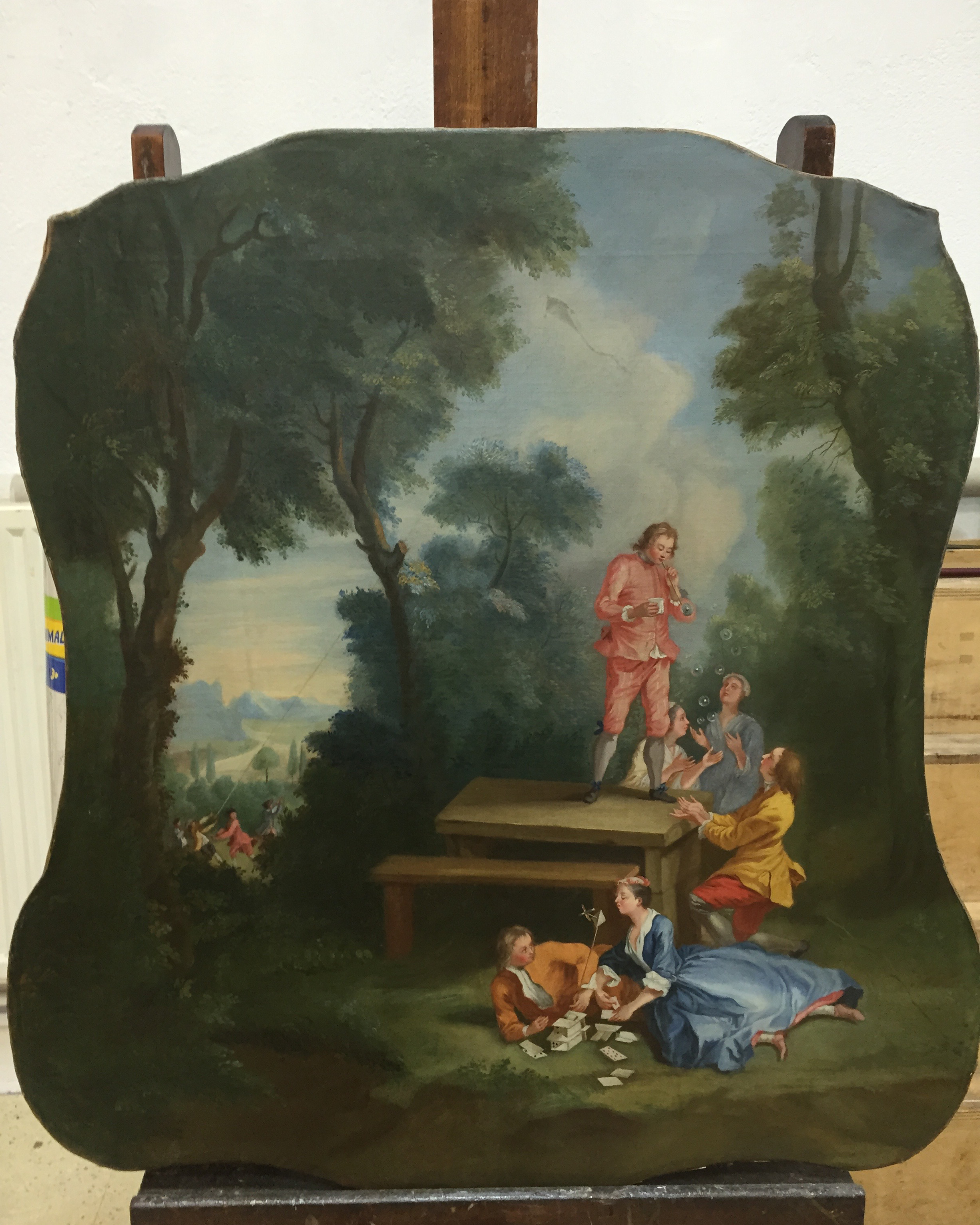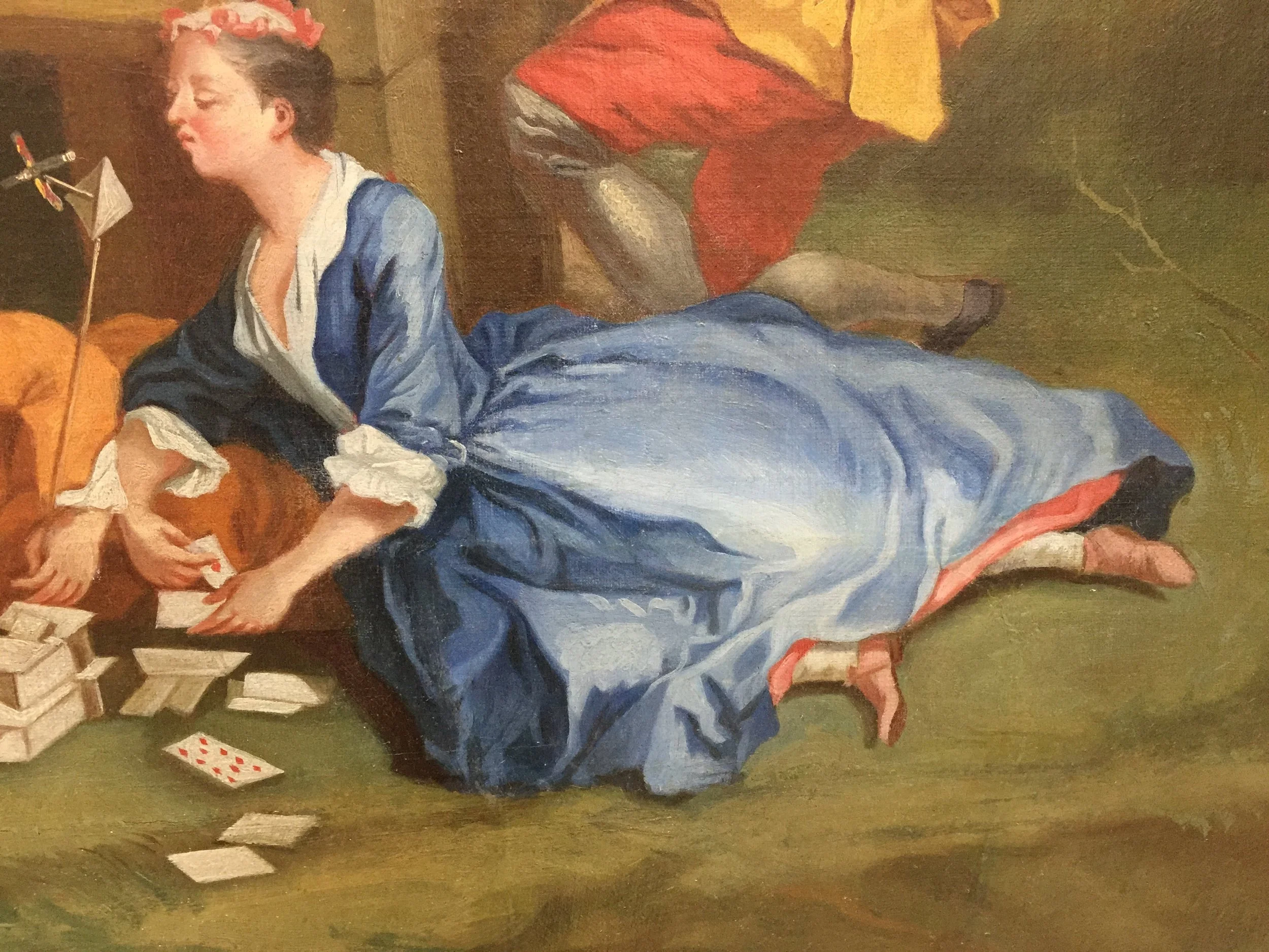 The iconography reflects scenes of noble leisure — outdoor amusements and courtly recreation — rendered in the light, saturated tonalities typical of the period.